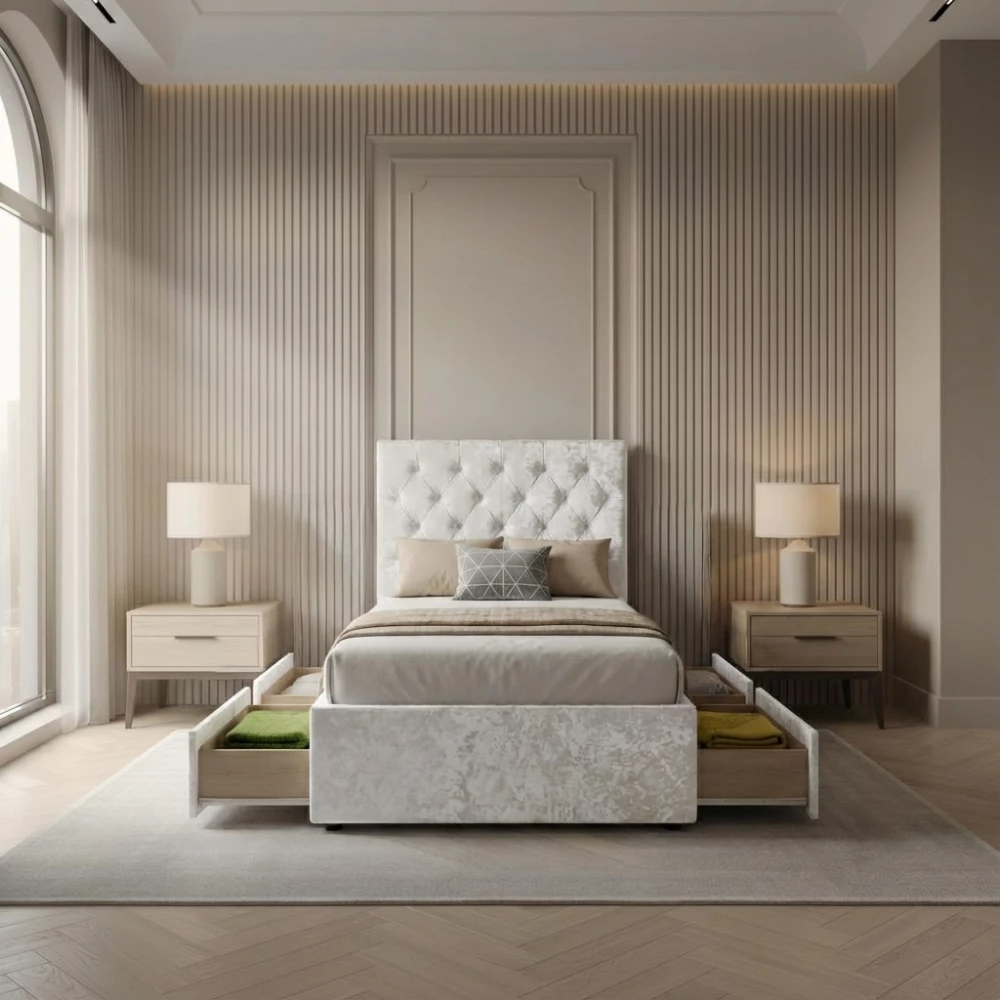 Optional Drawer StorageNeed extra storage? Add easy-access pull-out drawers to keep bedding, clothes, or everyday essentials neatly organised. The storage options help maintain a clutter-free, tidy bedroom without taking up extra floor space.Custom Headboard HeightsChoose between:- 24" classic headboard for a clean, simple look